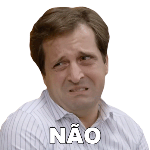 Gregório Duvivier makes a disgusted face with the word 'NÃO' (No) displayed, expressing strong refusal or disapproval.