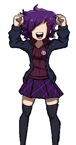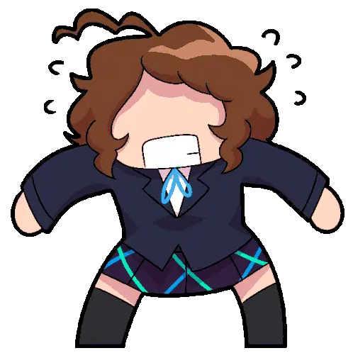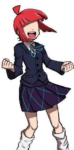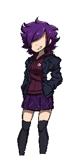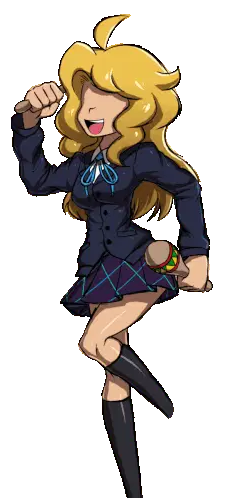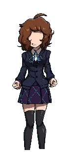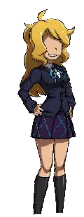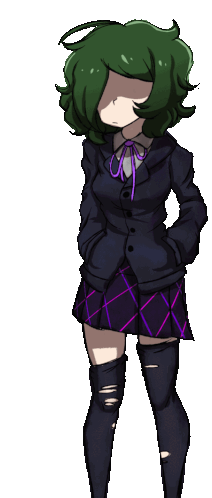 Nari, a green-haired girl from Metaware High School, stands in her uniform, looking down shyly.