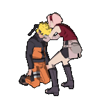 A pixel art sticker featuring Naruto Uzumaki and Sakura Haruno from Naruto Shippuden, with Sakura kneeling.