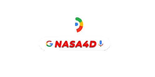 Animated Google G logo transforming into dots above a search bar displaying 'GNASA4D!' with a microphone icon.
