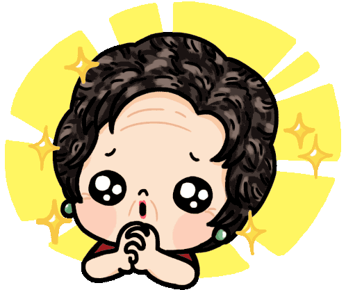 Bu Yusni, from Nasi Bungkus Bu Yusni, shows an amazed expression with sparkling eyes and clasped hands, exclaiming 'Wow!'