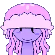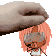 Animated sticker featuring Natalie from Synthesizer V, a pink-haired girl with glasses, as a hand gently touches her head.