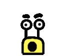 A pixel art character from Nathan Nathans Basics, featuring a yellow body and two eyes, shaking playfully.