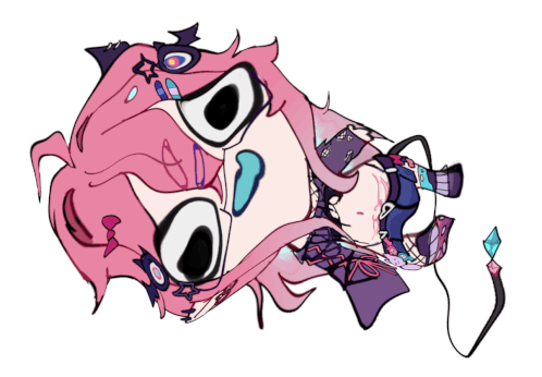 Nattomi-glitch, a cartoon girl with pink hair and purple clothes, experiences a vibrant digital glitch effect.