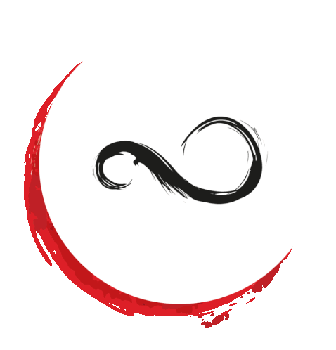 A dynamic sticker featuring a black brush stroke infinity symbol encircled by a vibrant red, incomplete brush stroke.