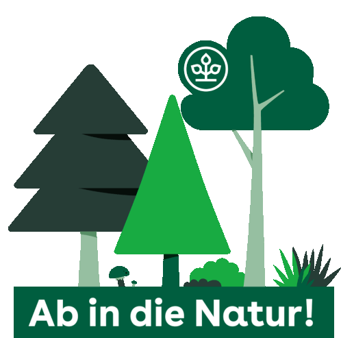 A vibrant sticker showing stylized trees and nature, with German text encouraging going outdoors for health and hiking.