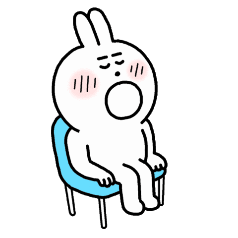 A cute white rabbit cartoon character sitting on a chair, sneezing with an 'Ah-Choo' caption and looking unwell.