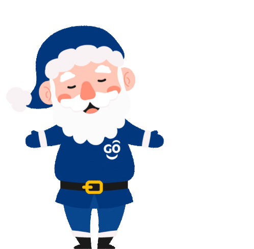 Animated Santa-like character in blue, singing cheerfully with musical notes, promoting Tigo Nicaragua's Christmas spirit.