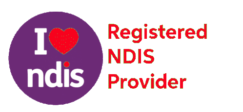 A vibrant logo sticker featuring 'I LOVE REGISTERED NDIS PROVIDER' for Ndmhs in Sydney, Australia.