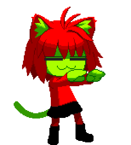 Neco Arc Annie, a pixel art cat-girl with red hair and green ears, performs a lively dance.