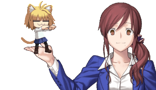 Noel from Tsukihime holds the mischievous Neco Arc in her hand in this animated sticker.
