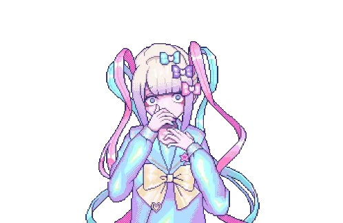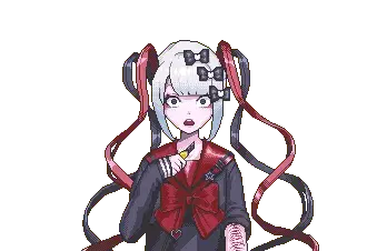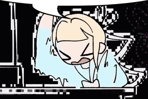 KAngel from Needy Streamer Overload appears overwhelmed and distressed amidst a glitchy, pixelated background, with a speech bubble.