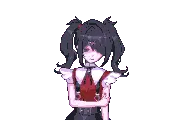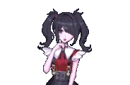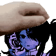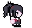 Ame-chan from Needy Streamer Overload gets her iconic pink and white striped hat placed on her head in charming pixel art.