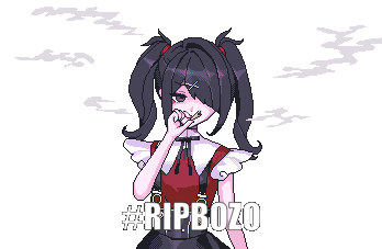 a pixel art of a girl smoking a cigarette with the hashtag #rip bozo