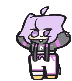 Nekomata Okayu, the purple-haired character, spins energetically in this cute animated sticker.