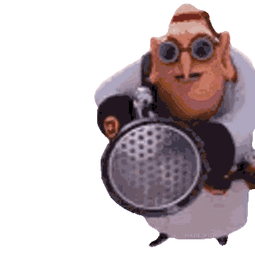 Dr. Nefario from Minions aims his Fart Gun, which then transforms into a brown blob. A funny and quirky animated sticker.