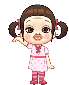 Neneng Gesrek, a cartoon girl with an exaggerated face, waves playfully while singing 'Lalalala'.