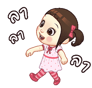 Neneng Gesrek, a cute cartoon girl with a pink dress and bow, happily waves goodbye with Thai text 'ลา' floating around her.
