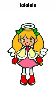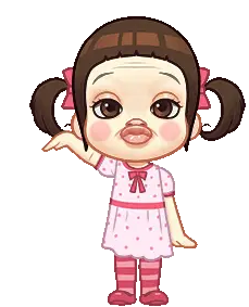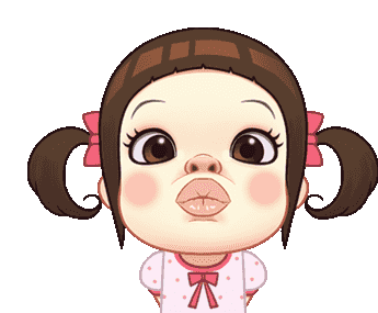 Neneng Gesrek, a cute cartoon girl with pigtails and bows, blows a playful kiss with puckered lips.