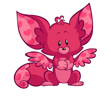 Animated Neopets Korbat sticker, a pink bat with closed eyes, gently flying with its wings spread.