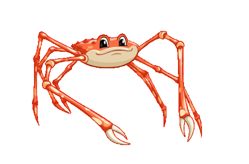 An animated Neopets Nimmo spider crab wiggles its long legs and claws in a fun, subtle dance on a white background.