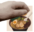 Nerd Brian, a cartoon character with glasses and a cap, holds a spoon over a bowl of delicious noodles.