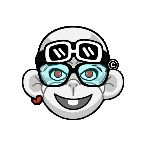 a cartoon monkey wearing glasses and goggles with a copyright symbol
