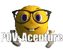 A yellow emoji with glasses and buck teeth points forward, accompanied by the text 'POV: Accenture'.
