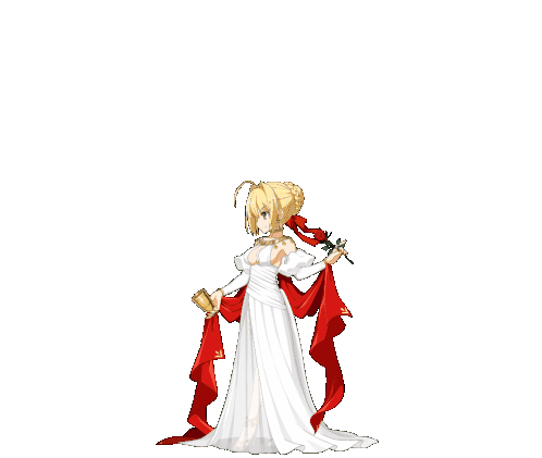 Nero Claudius, also known as Saber, performs a dramatic spin, unfurling her red sash in a white dress.