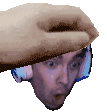 Neroshad's pixelated head is comically held by a hand, creating a classic 'pog' meme reaction.