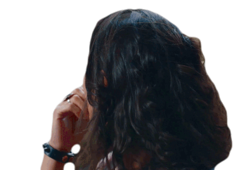 Nora, portrayed by Mabel Cadena, appears nervous and stressed, biting her nails in this animated sticker from Senorita89.