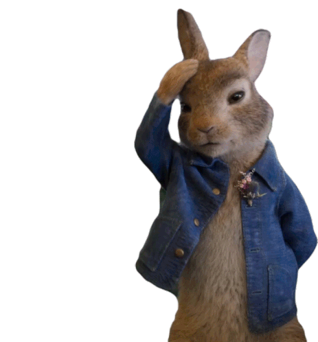 Peter Rabbit, voiced by James Corden, looks nervous and anxious, fixing his fur in this animated movie sticker.