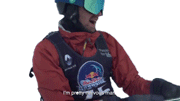 A skier in a Red Bull vest expresses his nervousness, saying "I'm pretty nervous man."