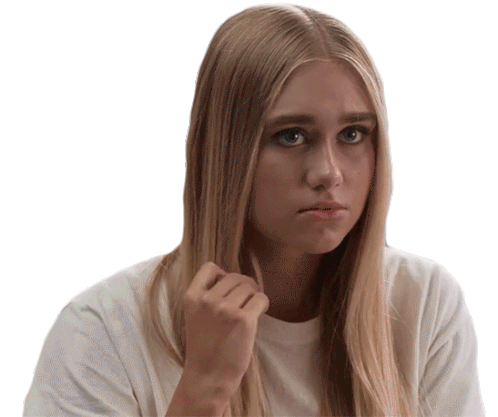 Emily Skinner portrays a nervous and worried expression, touching her hair in a moment of stress or overwhelm.