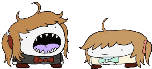 a cartoon of a girl with a bow tie and a skull on her head