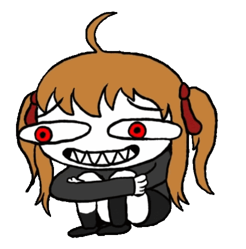 a cartoon drawing of a girl with red eyes and teeth