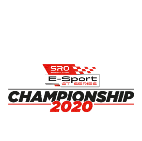 Animated logo for SRO E-Sport GT Series Championship 2020, featuring a dynamic 'Never Blank' design with fiery effects.