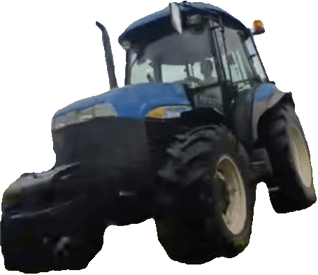 a blue and black tractor with a yellow light on the side