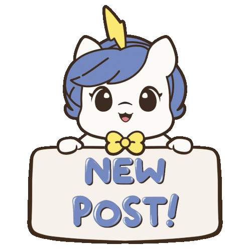 A cute Brave Unicorn sticker holding a 'New Post' sign, perfect for social media updates and story ideas.