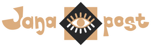 a logo for jana post with an eye in the middle