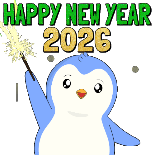 a penguin is holding a wand in front of a fireworks display that says happy new year 2026