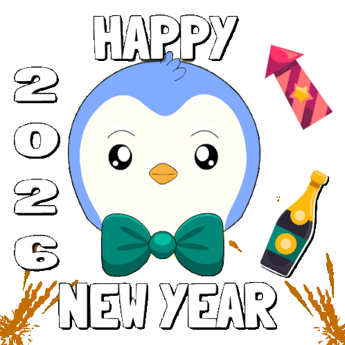 a penguin wearing a bow tie and the words happy new year written below it