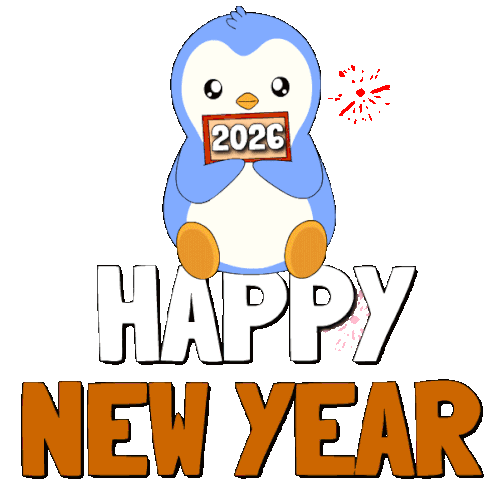 a penguin is holding a sign that says 2026 in its beak
