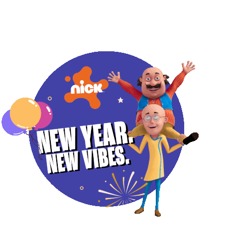 an advertisement for nick shows two cartoon characters holding balloons