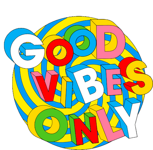 Vibrant 3D text sticker displaying 'GOOD VIBES ONLY' with a psychedelic swirling background, perfect for New Year 2022.