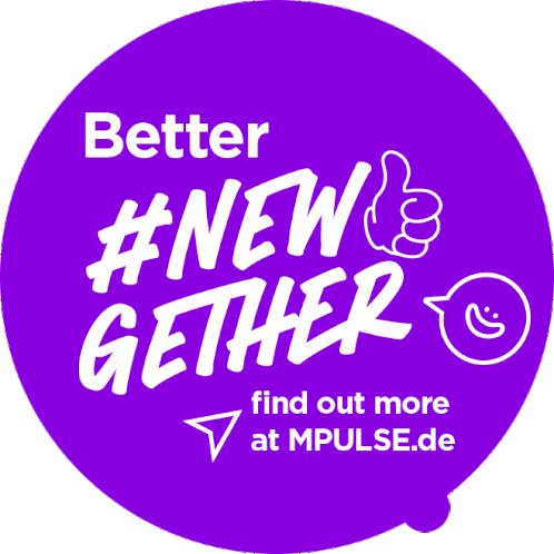 A dynamic sticker featuring 'Better #NEW GETHER' text, a thumbs-up, and 'MPULSE.de' on a color-changing background.