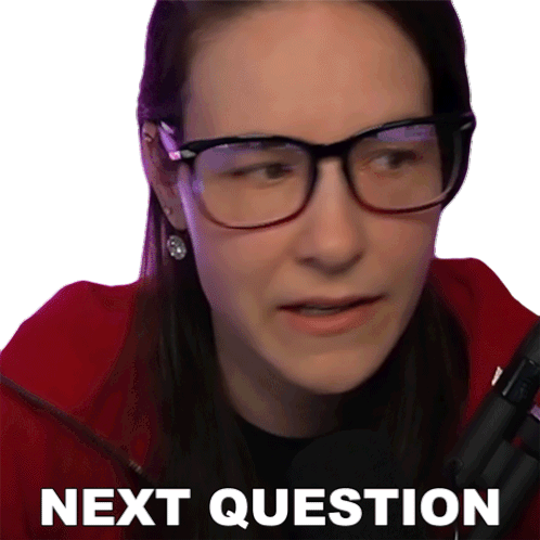 Cristine Raquel Rotenberg, known as Simply Nailogical, asks 'Next Question' with a direct gaze, perfect for moving on.
