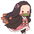 Animated sticker of Nezuko Kamado from Demon Slayer running with her iconic bamboo muzzle and pink kimono.