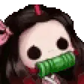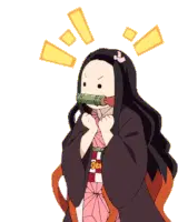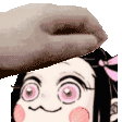 Nezuko from Demon Slayer receives a gentle headpat, showing her cute and happy reaction.