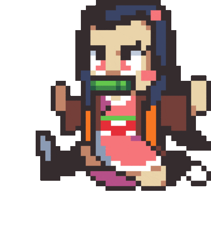 Nezuko Kamado from Demon Slayer in a cute pixel art style, running with a determined expression.